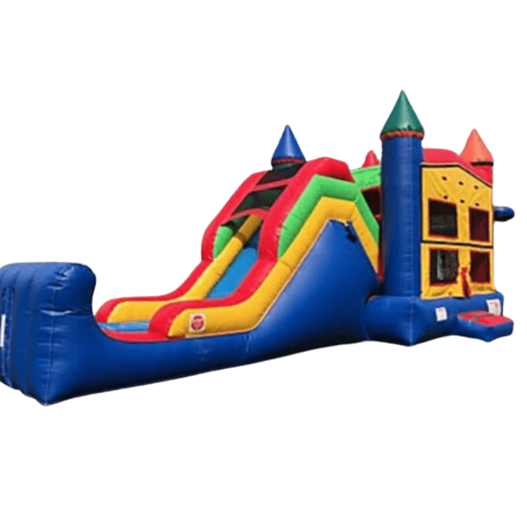 1This 5 in 1 Combo features a dual split slide! Each slide features an individual pool and/or stopper, its your preference! This slide is the tallest of any combo! This unit is a great addition to any outdoor event!😎💦🌞
