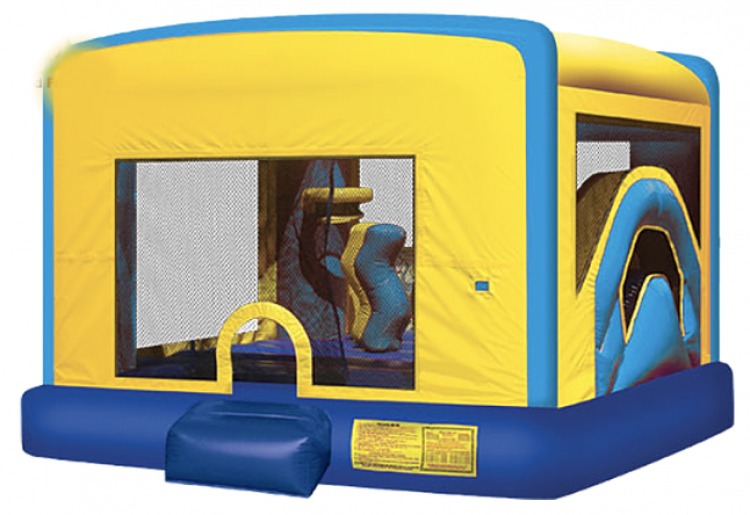 What a great way to get an ALL-in-1 Moon Bounce and TRIPLE your fun! This combo starts with an obstacle course that features crawl throughs and pop ups, leading into the jump area, up a climbing area, and down a slide. Can be used wet or dry.