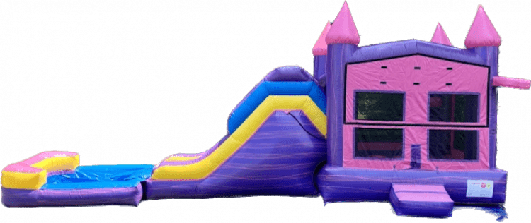 1Brighten up your event with the Cotton Candy Castle Combo, a dreamy 5-in-1 inflatable in soft shades of purple and blue! This combo features a spacious jump area, wall climb, tall slide, and two basketball hoops (one inside, one outside) for double the fun. Use it wet or dry—a refreshing splash in the summer with the included pool, or keep it dry with the bumper option. Want to match a theme? Add a customized panel for just $25! 🍭💦🌞