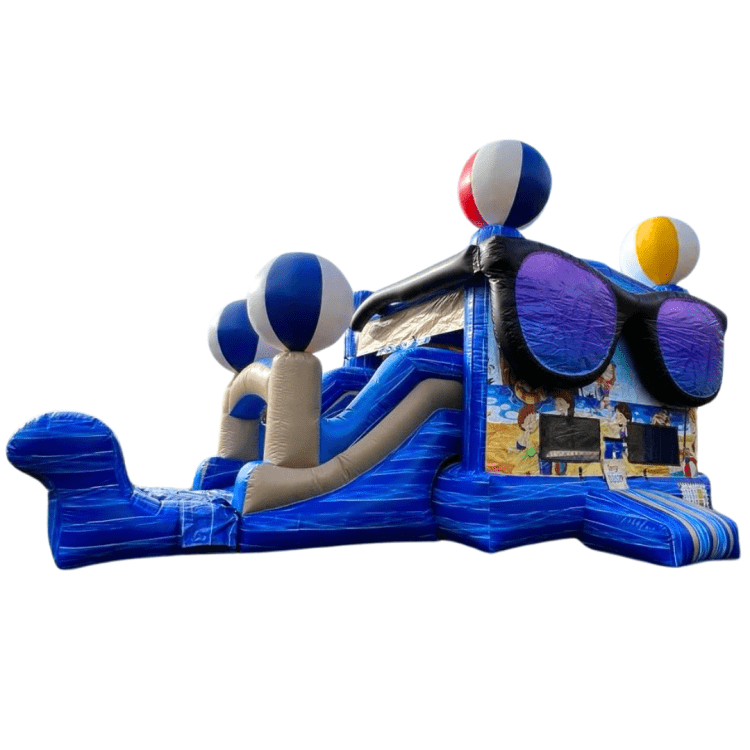 Get ready to shine bright with the Sunny Day Combo! This inflatable beauty is as cheerful as a perfect day in the sun, featuring a giant pair of inflatable sunglasses on the front—just a hint of the fun that awaits inside! The combo blends a bounce house, slide, and climbing wall into one exciting unit, ensuring hours of active play for kids and the young-at-heart.