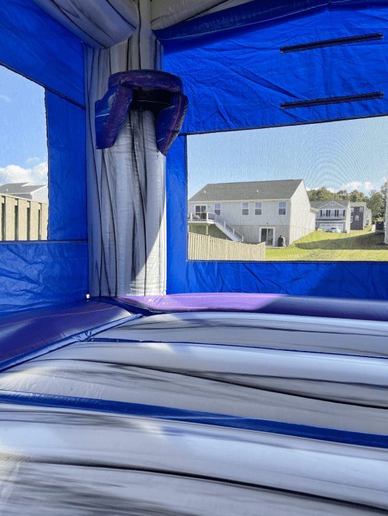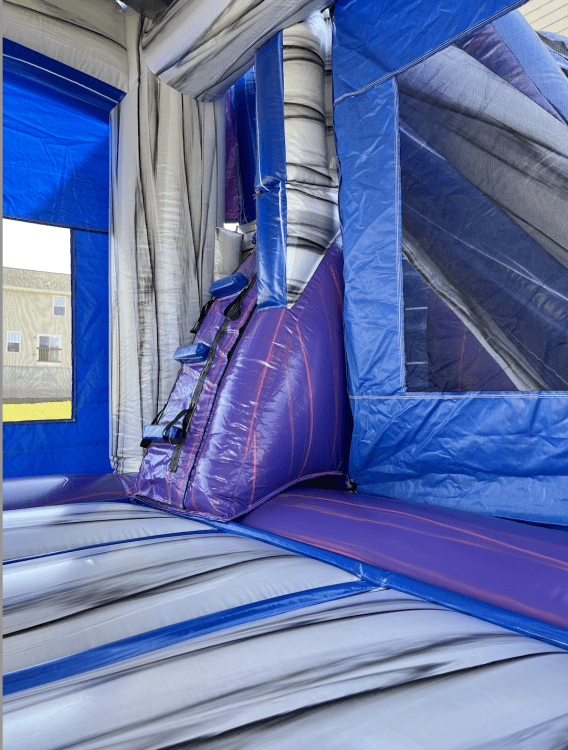 Brighten up your event with the Cotton Candy Castle Combo, a dreamy 5-in-1 inflatable in soft shades of purple and blue! This combo features a spacious jump area, wall climb, tall slide, and two basketball hoops (one inside, one outside) for double the fun. Use it wet or dry—a refreshing splash in the summer with the included pool, or keep it dry with the bumper option. Want to match a theme? Add a customized panel for just $25! 🍭💦🌞