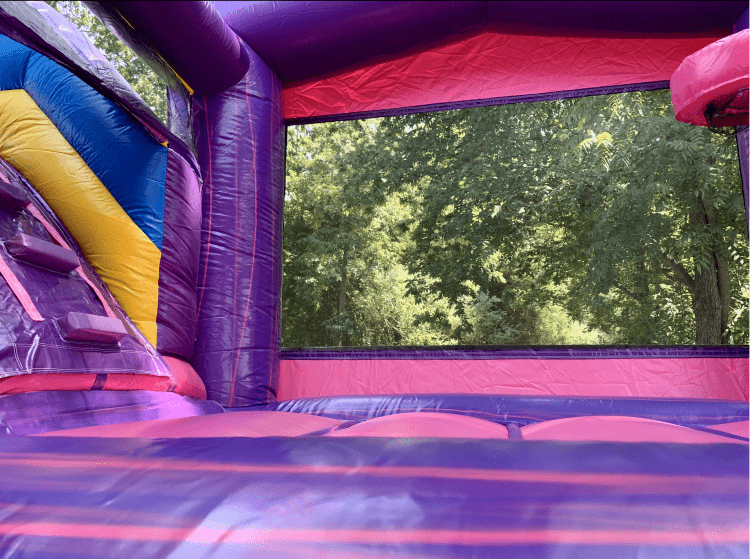 This 5-in-1 inflatable Marble Princess Castle Combo is packed with fun from start to finish! Featuring a jump area, wall climb, tall slide, and two basketball hoops (inside & outside), this colorful castle has something for everyone.