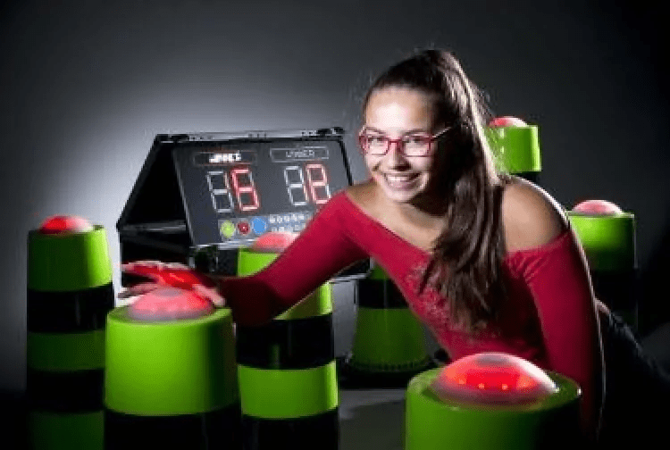 Players race against the clock (and each other) to tap their color-coded cones as they light up. Whoever hits the most targets—or reaches the score goal first—wins!