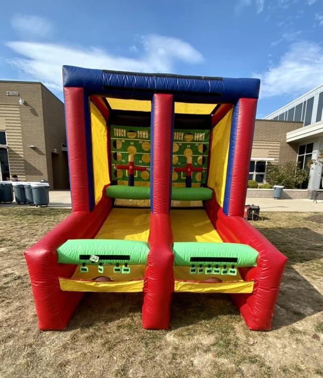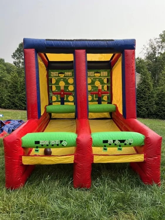 Ready... Set... THROW! The Touchdown Toss is the ultimate football-themed game for players of all ages looking to test their aim and accuracy. Whether you're a rising quarterback or just in it for fun, this inflatable game challenges you to throw like a pro and score big points!