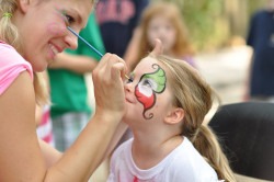 Our experienced, and very artistic artists use hypo allergenic, professional face paint ONLY; not ever cheap acrylic paints. They come equipped with everything they need to preform their talent. Our artists can make very intricate or personalized designs for kids at birthday parties or smaller gatherings, as these tend to take longer to orchestrate. For schools, festivals, churches, or larger events, we will only do a select few similar designs in order to get more kids done within the allotted time.