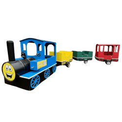 Climb aboard the Tractor Pulled Trackless Train and bring the magic of a real train ride to your next event—no tracks required! This charming ride features three colorful passenger carts, each able to seat up to 4 medium-sized riders, making room for 12 passengers per trip. It's the perfect attraction for school events, fall festivals, carnivals, birthday parties, and community celebrations.