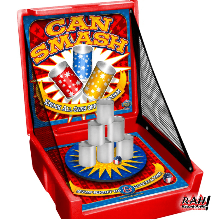Krazy KansCreate Your Own Water Slide Package:Krazy Kans102887069_2881333_16531270100 Krazy Kans is a fun and challenging game that tests your accuracy and precision. The objective is simple: throw bean bags at a stack of cans and try to knock them all down. Perfect for all ages, this carnival classic adds an interactive element to any event, making it ideal for birthday parties, school carnivals, or outdoor festivals. Get ready for hours of fun as you aim to topple the Krazy Kans!