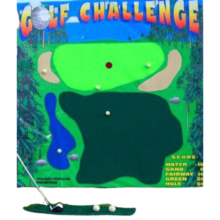 Hole In OneCreate Your Own Water Slide Package:Hole In One102887069_2881333_16695210100 Bring the excitement of mini golf to your event with our Hole in One carnival game! Players get two chances to sink the ball and score a hole in one. Simple? Maybe. But it takes just the right aim and touch to win! ⛳