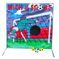Kick & Score Frame GameCreate Your Own Water Slide Package:Kick & Score Frame Game102887069_2881333_11326930100 Get ready for a thrilling sports challenge with our Kick & Score Frame Game! This exciting carnival-style game is perfect for any sports-themed party, event, or carnival.