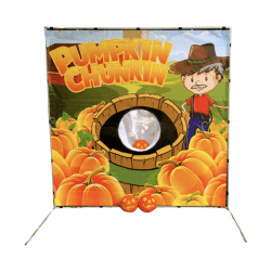 Pumpkin Chunk'N Frame GameCreate Your Own Water Slide Package:Pumpkin Chunk'N Frame Game102887069_2881333_11326970100 Ready, aim, and CHUNK that pumpkin! Our Pumpkin Chunk'N Frame Game is a festive favorite for any fall festival, school event, or Halloween party. Players test their skills by kicking or tossing the ball into the smiling pumpkin’s mouth for points—and big laughs!