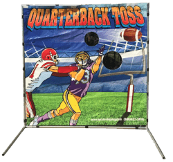 Quarterback Toss Frame GameCreate Your Own Water Slide Package:Quarterback Toss Frame Game102887069_2881333_11326950100 Step up, aim, and throw like a pro! The Quarterback Toss Frame Game is a classic carnival-style sports challenge where guests of all ages get to test their passing skills. Players take turns tossing small foam footballs, aiming for the target holes to rack up points and claim quarterback bragging rights!