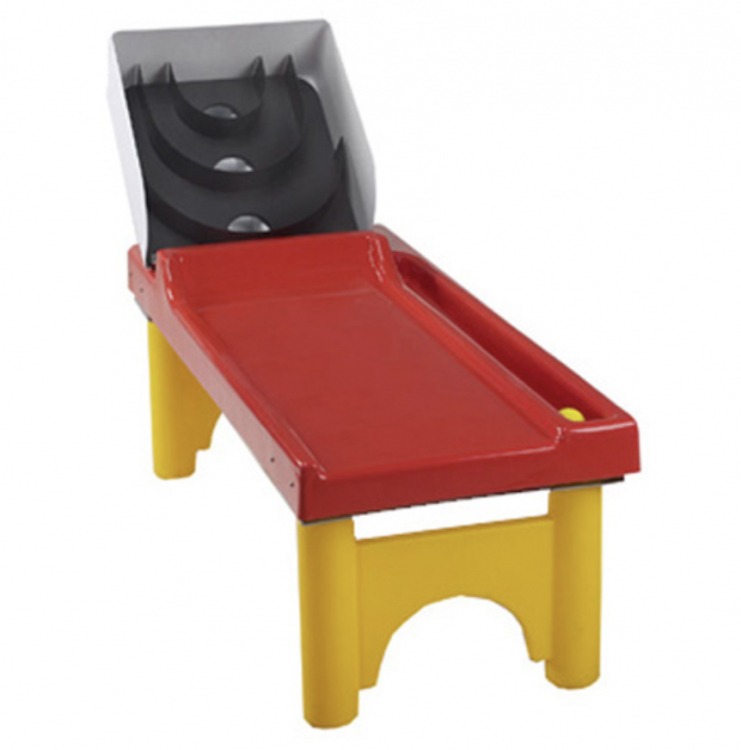 🎳 Players roll the ball up the ramp and aim for the highest-scoring rings — a simple yet thrilling challenge that tests aim, control, and a bit of luck!