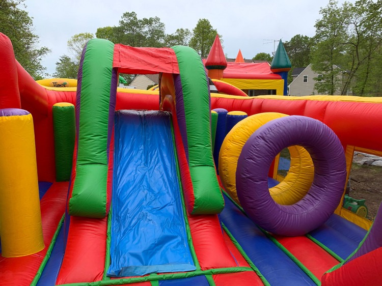 - OCCUPANCY: A maximum of 5-6 kids of equal size at one time for bounce houses, and 1 person at a time for slides is what most inflatable manufacturers recommend.